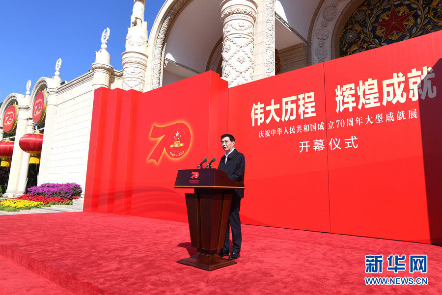 9月23日,“偉大歷程 輝煌成就——慶祝中華人民共和國(guó)成立70周年大型成就展”開幕式在北京展覽館舉行。中共中央政治局常委、中央書記處書記王滬寧主持開幕式并宣布成就展開幕。 新華社記者 饒愛民 攝