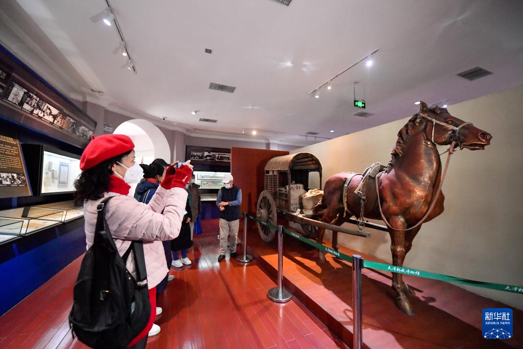 3月23日,游客来到天津邮政博物馆参观“龙行天下 津邮风采”主题邮政文化展。