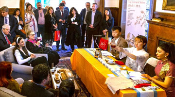 5月7日,在哈尔滨国际会展体育中心,观众在首届东北亚文化艺术创意设计博览会上留影。