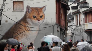 5月7日,在哈尔滨国际会展体育中心,观众在首届东北亚文化艺术创意设计博览会上参观拍照。