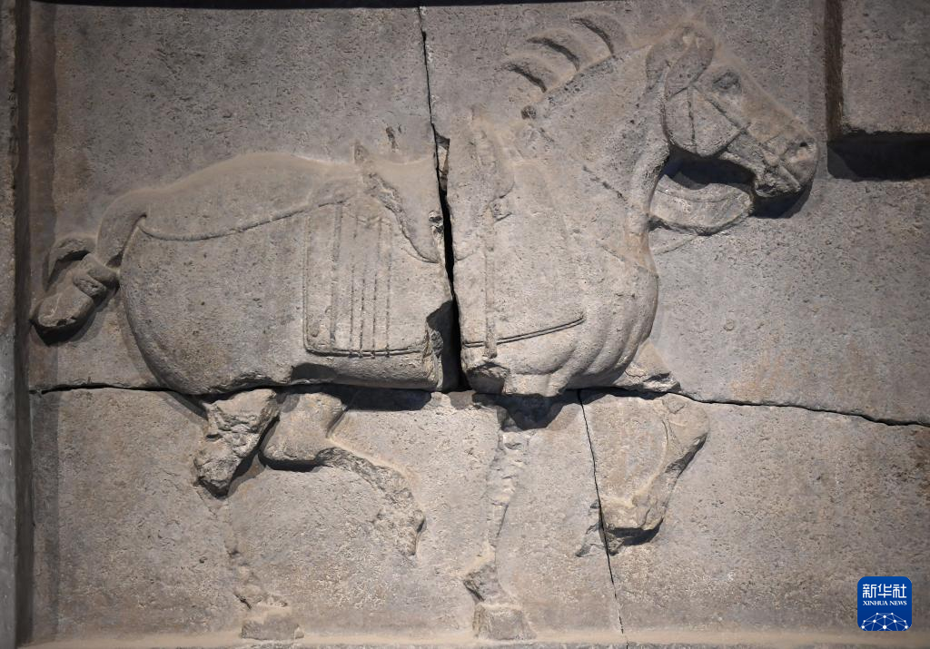 5月9日,游客在西安碑林博物馆内参观昭陵六骏石雕。唐昭陵六骏石刻是为纪念六匹随唐太宗李世民征战疆场的战马而刻制的,其中特勤骠等马匹带有明显的西域良马特征。