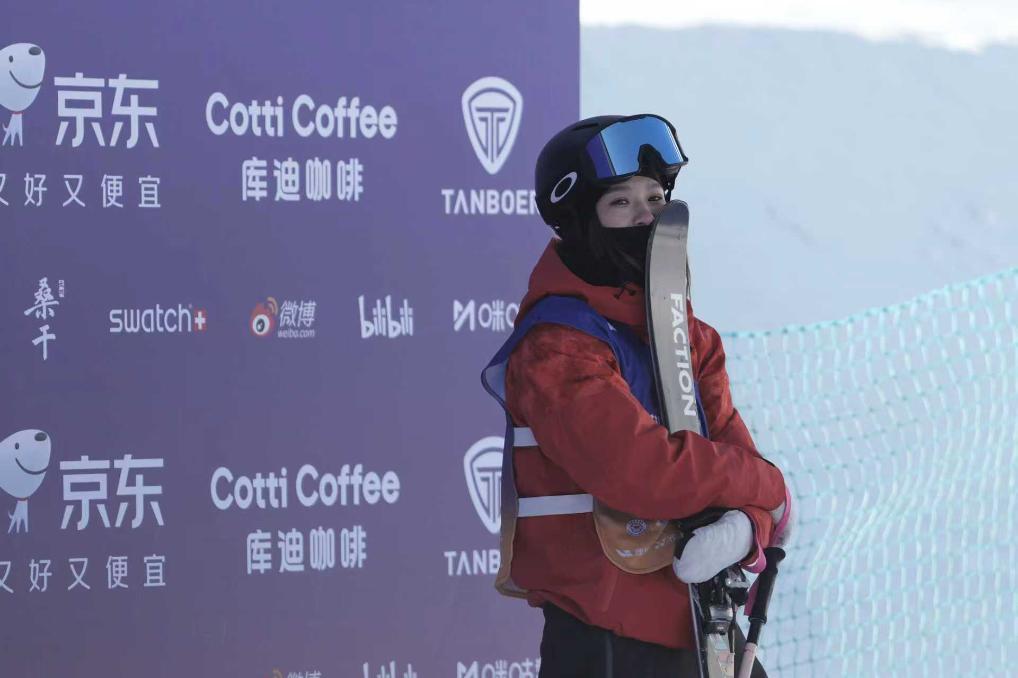 中国自由式滑雪运动员杨如意在比赛中等待裁判打分