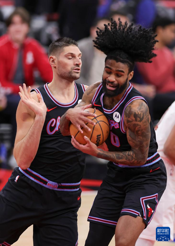 12月17日,公牛队球员怀特(右)和队友武切维奇在比赛中。